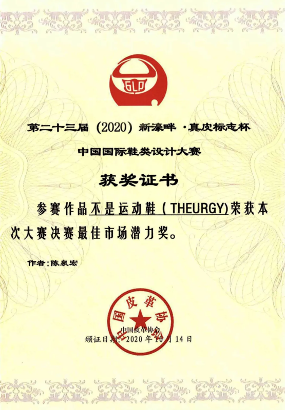 热烈祝贺南海鞋业协会监事长,佛山市魔法鞋业科技发展有限公司总经理陈泉宏设计的作品“不是运动鞋”,荣获第二十三届(2020)新濠畔·真皮标志杯 中国国际鞋类设计大赛 最佳市场潜力奖!